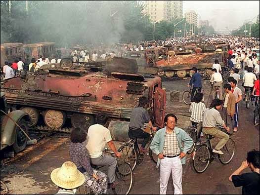“Trên một đại lộ ở phía tây Bắc Kinh, người biểu tình đã đốt toàn bộ một đoàn xe quân sự hơn 100 xe tải và xe bọc thép. Hình ảnh trên không của đám cháy và cột khói đã ủng hộ mạnh mẽ cho lập luận của chính phủ Trung Quốc rằng quân đội là nạn nhân, không phải đao phủ. Cảnh khác cho thấy xác chết binh lính và người biểu tình tước súng trường tự động của những binh lính không chống cự,” Washington Post thừa nhận đã có lợi ích phe đối lập chống chính phủ trong câu chuyện đăng ngày 12 tháng 6 năm 1989.